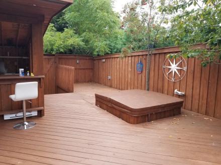 Private, enclosed resort like outdoor space; expansive deck, patio sitting area with awning, BBQ area, wet bar. Note: backyard has hot tub that currently requires repair. Owner happy to repair, but maintenance and upkeep of hot tub is renter’s responsibility.