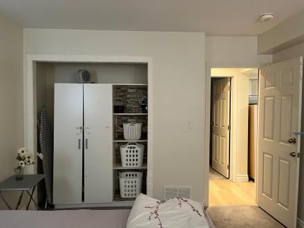 Fully furnished with queen-size bed, brand-new high-quality orthopaedic hybrid mattress with storage, new carpet floors , closet, ironing board with iron, office table, and chair
