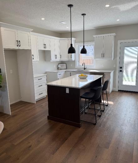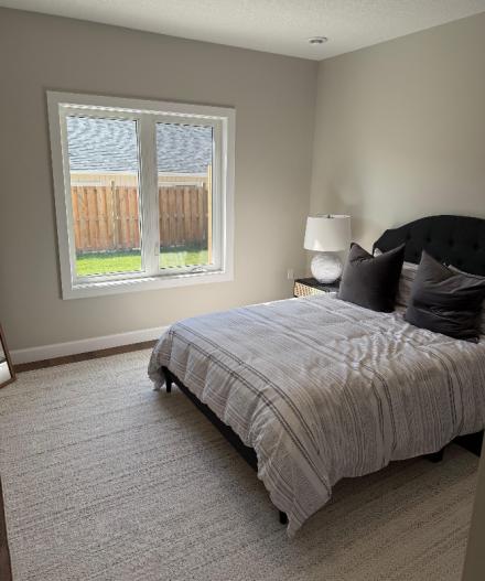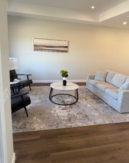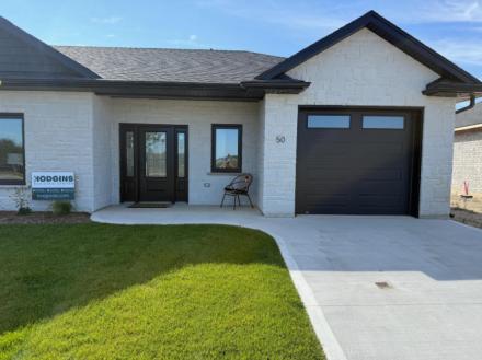 Welcome to Camden Estates, the epitome of modern living in this luxurious bungalow townhouse end unit features 2 bedrooms 2 baths and almost 1400 sq. ft. of meticulously designed living space. The exterior presents a striking combination of stone and black accents. An open-concept layout adorned with luxury vinyl flooring throughout and lots of natural light. The main living area is thoughtfully illuminated with pot lights. A beautiful tray ceiling in the living room adds a touch of refinement enhancing the spacious feel of the 9' ceilings throughout. At the heart of this bungalow is a designer kitchen that is sure to inspire culinary creativity. Featuring a large island, pendant lighting, quartz counter tops and quality cabinetry. In addition the kitchen features a pantry and a convenient walkout to a west facing private patio, providing the perfect setting for outdoor dining and relaxation, and a view of the spectacular sunsets. The Primary suite is a luxurious retreat complete with a generous walk-in closet and stylish 3 pc bath with beautiful black accents. The second bedroom is amply sized with a double closet and a large window. A beautifully designed 4 pc bath serves as a perfect complement, ensuring that guests have ample space to unwind. This luxurious grade on slab townhouse offers not only a beautifully designed interior but also an enviable location. Situated within walking distance to shopping, recreation centre, and a new aquatic centre, residents can enjoy the convenience of everyday amenities right at their doorstep. It’s just a five-minute drive to the area's sandy beaches, allowing you to indulge in sun-soaked days whenever the mood strikes. Luxury lifestyle living awaits you