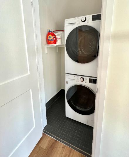 - In‑unit laundry and climate control for year‑round comfort