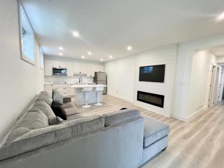Bedroom rental in furnished basement with private bathroom. Shared kitchen and living room. $1200/month. Available until June 30/2026